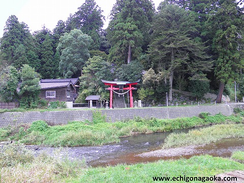Get off the #10 bus (Ogi-sen) at "Sugahara Jjinjya Iriguchi" bus stop. Turn from the bus route to west towards Hamochi River. Cross the bridge and turn right to get to the red Torii gate. As shown in Photo.54.1, Torii gate can be seen from opposite side of the river.